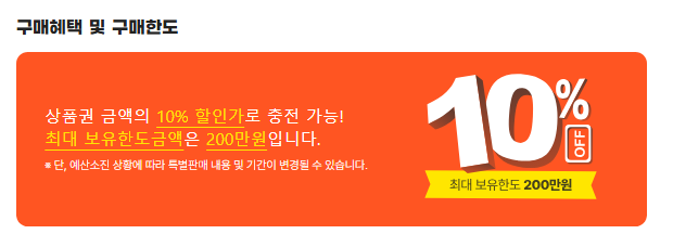 - 충전 시 10% 할인 먼저 확보