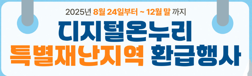 2025년 8월 24일부터는 특별재난지역 주민과 해당 지역에서 상품권을 사용하는 분들을 위한 추가 환급 혜택이 시작됩니다. 경기, 세종, 충남, 전북, 전남, 경북, 경남, 울산 등 49개 지역이 대상이며, 정기 환급과 별도로 추가 지원을 받을 수 있습니다.