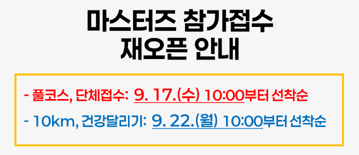 - 풀코스 단체 접수: 2025년 9월 17일(수) 오전 10시, 선착순