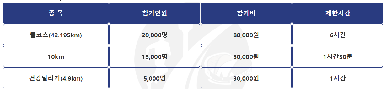 접수는 공식 홈페이지를 통해 온라인으로 진행됩니다. 선착순 마감 방식이므로 원하는 종목에 참가하려면 접수 시작과 동시에 신청하는 것이 유리합니다. 매년 풀코스와 10km 종목은 조기 마감되는 경우가 많습니다.