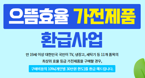 구매 금액의 약 10%를 환급해 주는 것이 기본 원칙이며, 가구당 환급 한도는 최대 30만 원입니다. 따라서 고가의 제품을 여러 개 구입하더라도 최대 환급액을 넘는 지원은 불가능합니다.