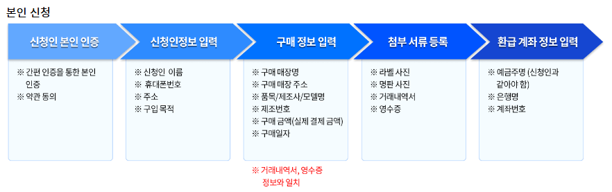 지원 대상자는 국내에 거주하는 개인 소비자로 제한됩니다. 기업, 단체, 공공기관은 지원 대상이 아니며, 해외 직구 또는 병행수입품은 환급이 불가합니다. 반드시 국내에서 판매된 정품을 구입해야 하며, 구매일자가 사업 기간 내에 포함되어야 환급 신청이 가능합니다.