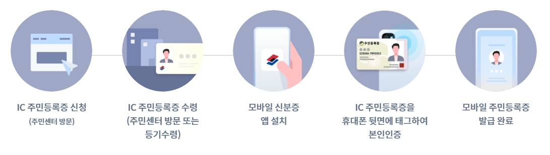 정부24 또는 주민센터에서 IC칩이 내장된 주민등록증을 재발급 받은 뒤, 스마트폰 뒷면에 태그하여 발급받는 방식입니다. 이 절차는 온라인 신청과 오프라인 수령이 결합된 형태입니다.