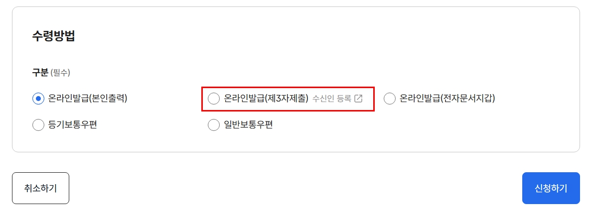 온라인 발급은 반드시 본인 인증을 거쳐야 합니다. 공동인증서, 금융인증서, 간편인증 등 사용 가능한 수단을 사전에 준비해야 하며, 타인의 인증서는 사용할 수 없습니다.