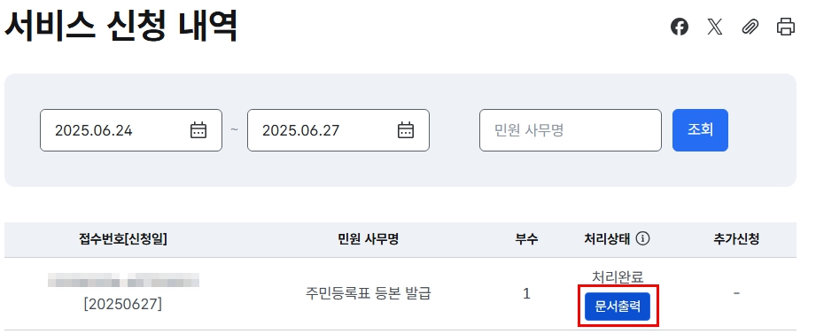 - 발급 유형 설정(세대 전원, 세대원 일부, 과거 주소 변동 등)